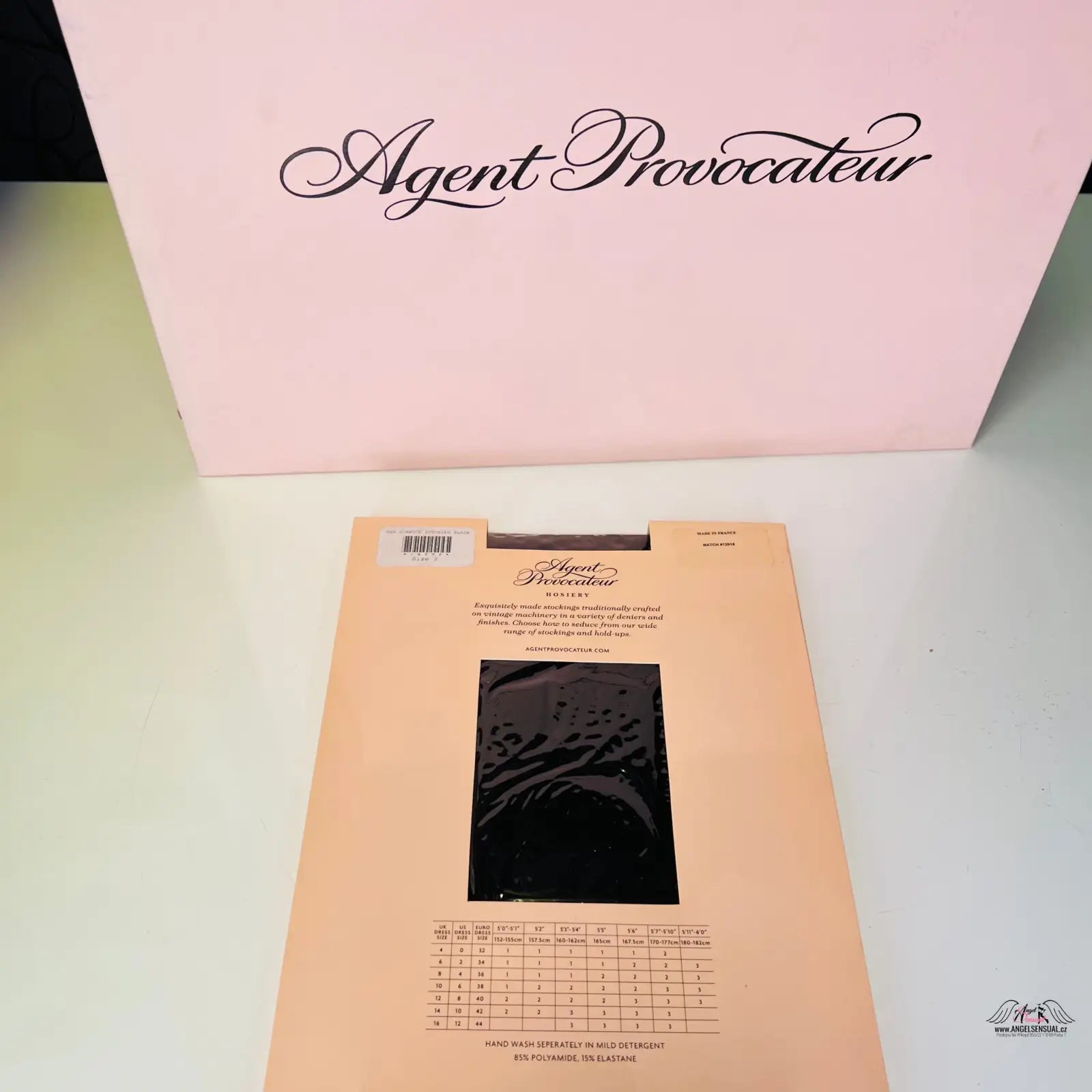 Obal přitažlivé strečové podvazkové punčochy Agent Provocateur s velikostní tabulkou